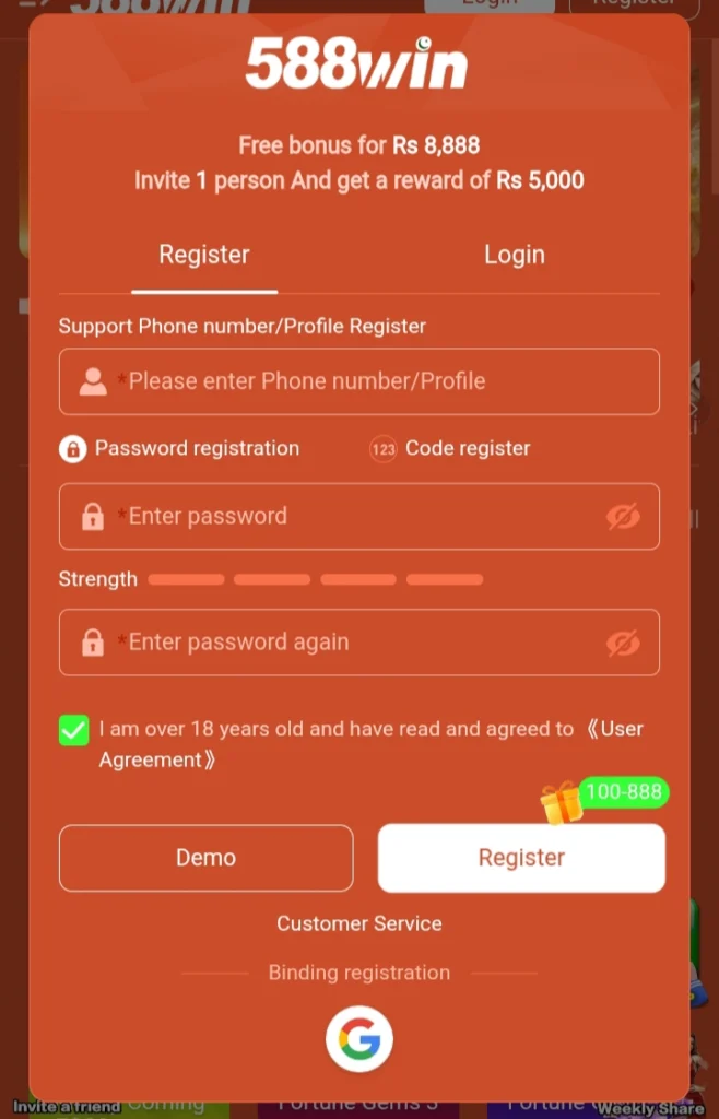 How to Register and Login 588 win APK Online?