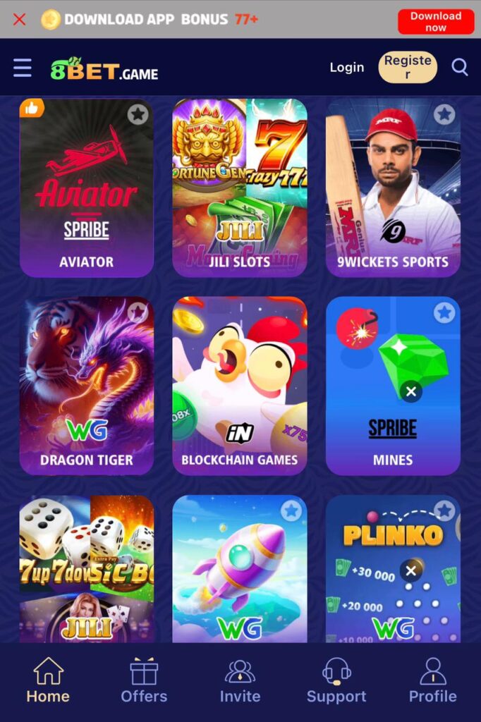 8bet game Download focuses on simple and fast gaming experience. Registration requires only a mobile number and password. The app runs smoothly on Android devices. Players can track their balance inside wallet section. It supports local banking methods for transactions.