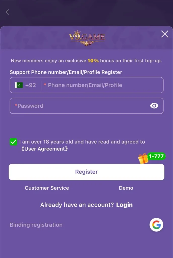 How to Register and Login on V99 Game APK?